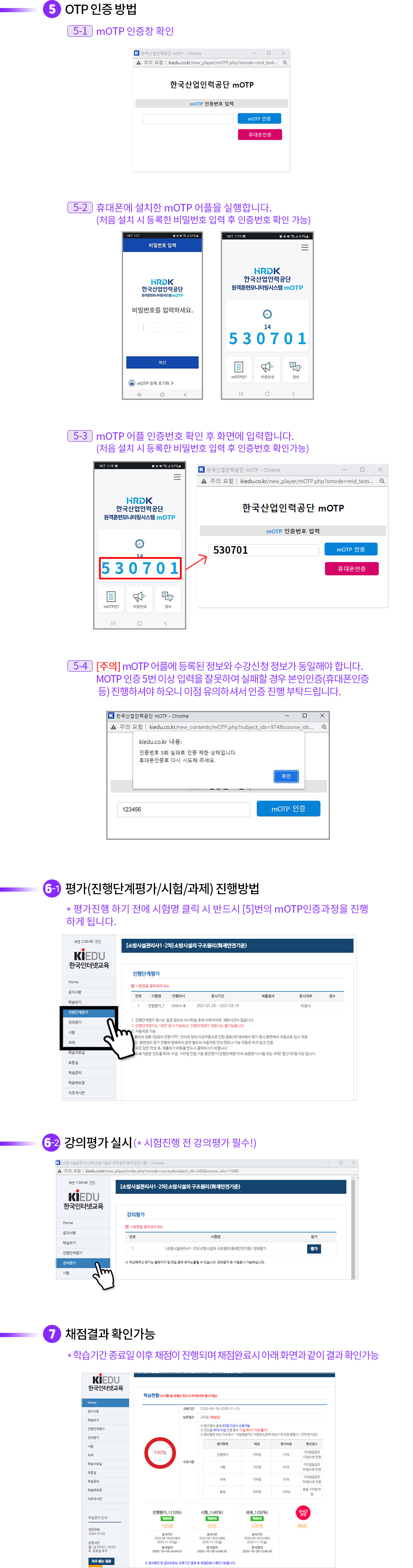 ¶ÇÇÑ, ¸Å 8Â÷½Ã ½ÃÀÛ ¹× Æò°¡(ÁøÇà´Ü°èÆò°¡/½ÃÇè/°úÁ¦) ÀÔÀå½Ã ½Ç½ÃÇß´ø ÈÆ·Ã»ýÀÎÁõ(Web OTP) ¡æ mOTPÀÎÁõÀ¸·Î º¯°æÀÌ µË´Ï´Ù.